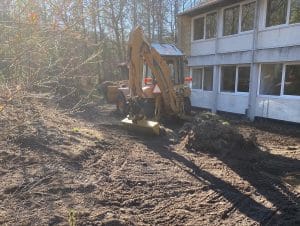 Vores mål er selvfølgelig en flot græsplæne, men den skal også passe ind til skoven, huset og de forskellige niveauer vi har på grunden, så alle tanker, ideer og planer skal gennemgås, gennemtænkes og vurderes hele tiden. En totalt fed proces, men enormt intens.