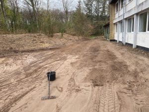 Rendegraveren kommer først igen onsdag, så næste græs-etape er først torsdag…. det kunne være så fedt, hvis plænen var lidt grøn til åbningsfesten.