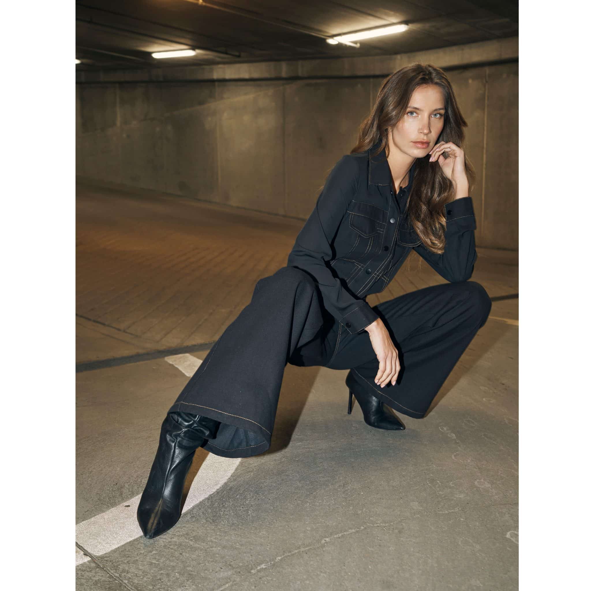 Style den åben over en top med matchende bukser for et gennemført, koordineret look – eller brug den lukket sammen med flade sko for en afslappet hverdagsstil.