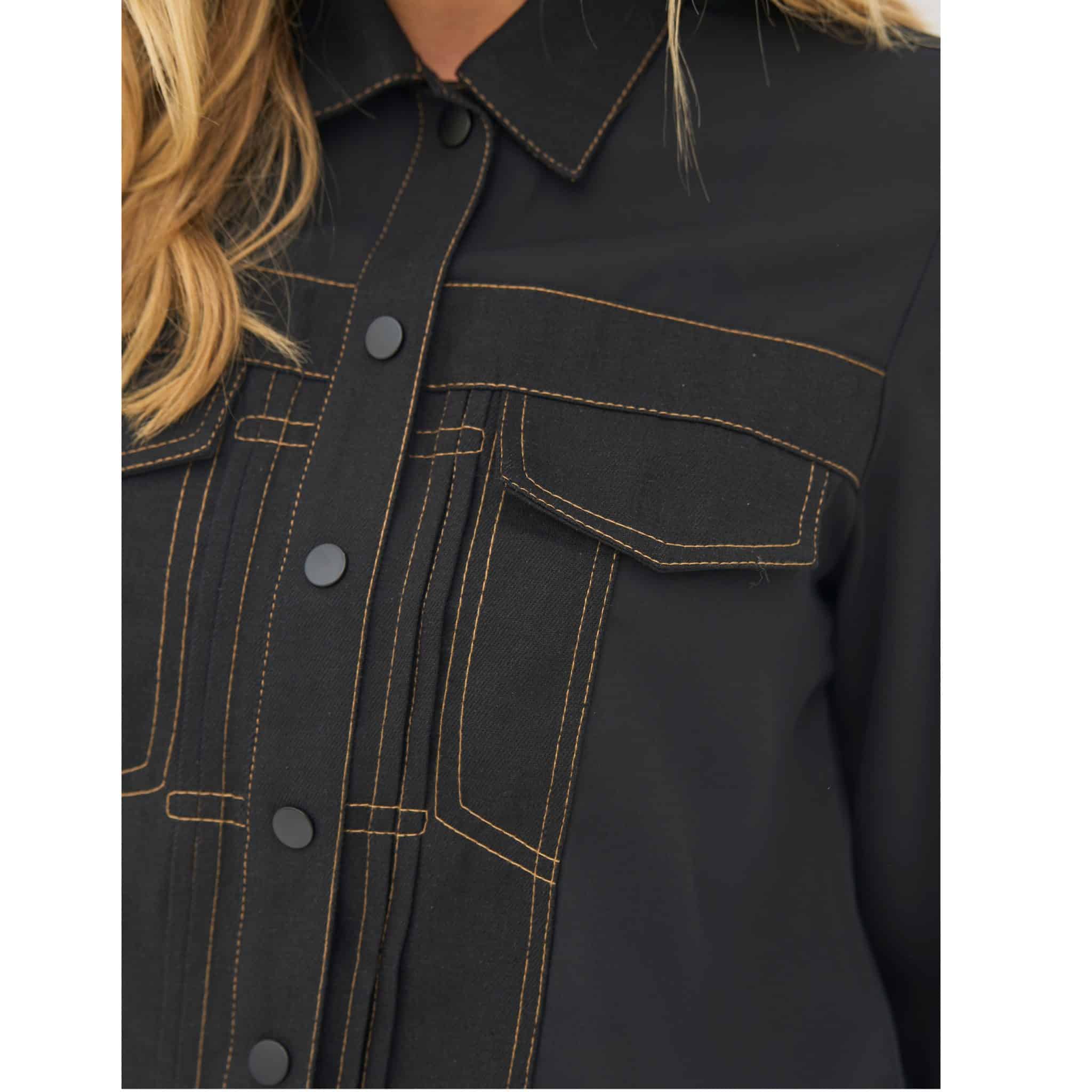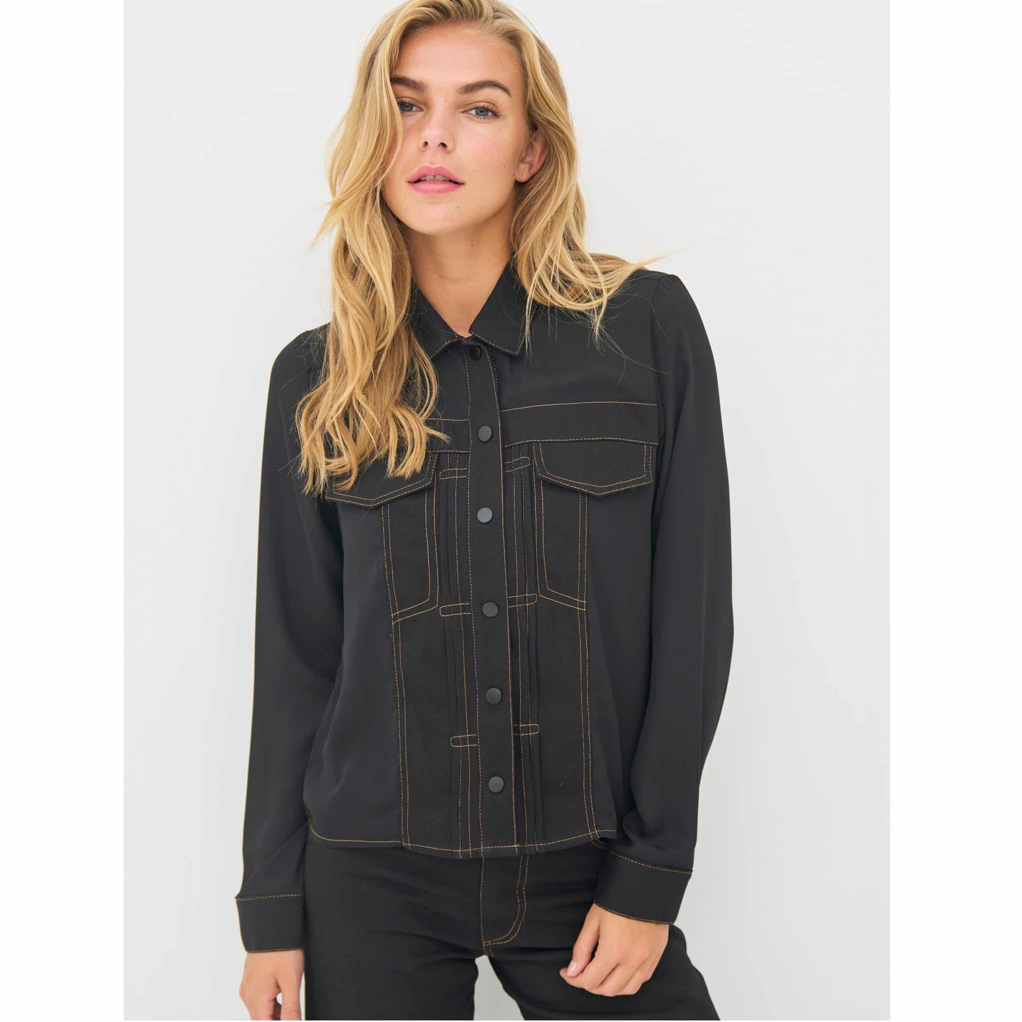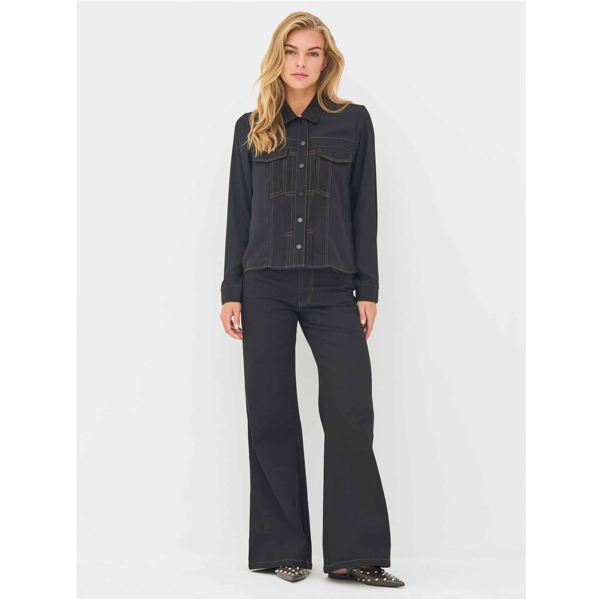 Denne denimskjorte forener det klassiske snit med fine, moderne detaljer. Den er designet med knaplukning foran, to brystlommer med flap og markante kontrastsyninger, som giver et stilfuldt og struktureret udtryk. Det lette og bløde materiale gør skjorten behagelig at have på – både som en del af lag-på-lag styling eller brugt alene som en let jakke.