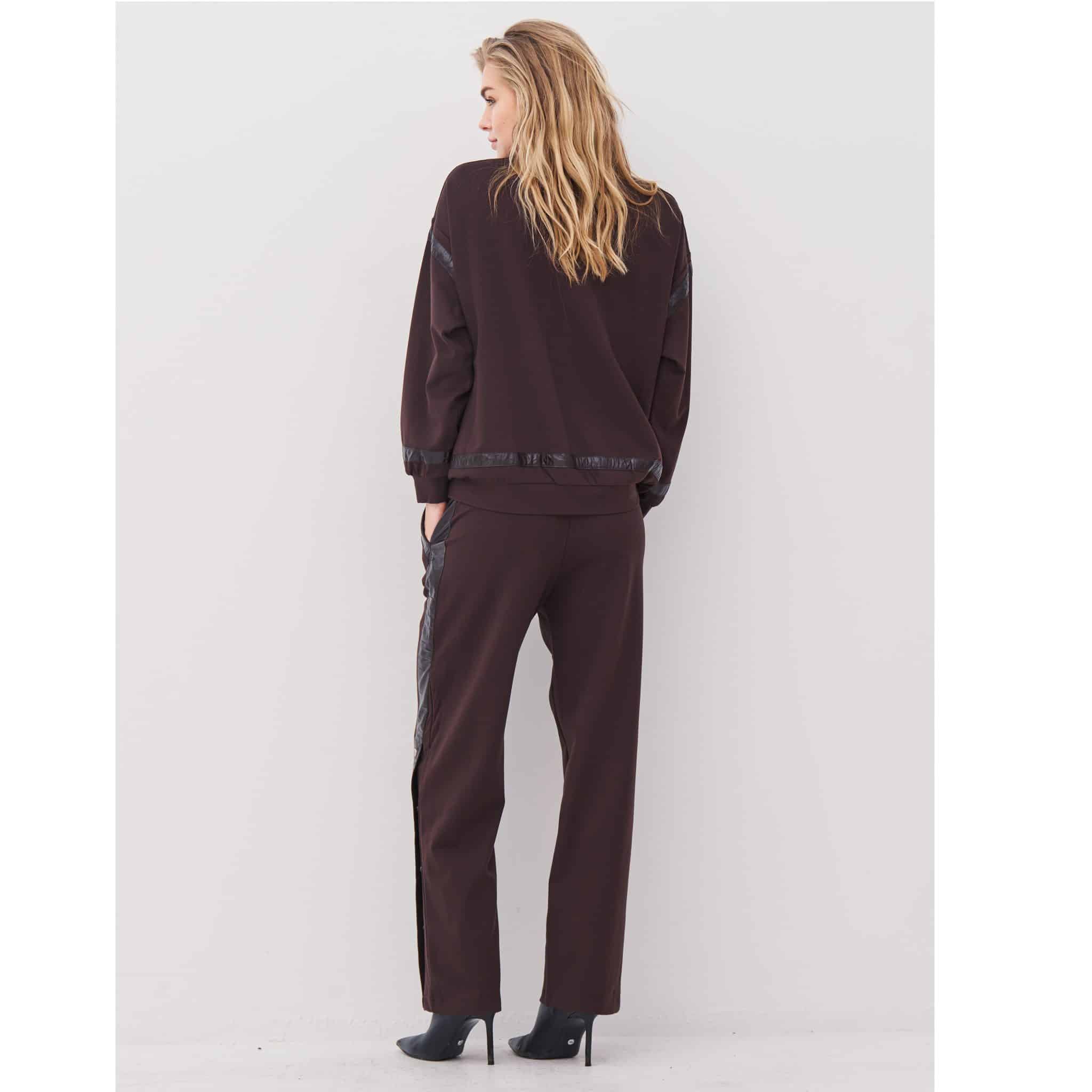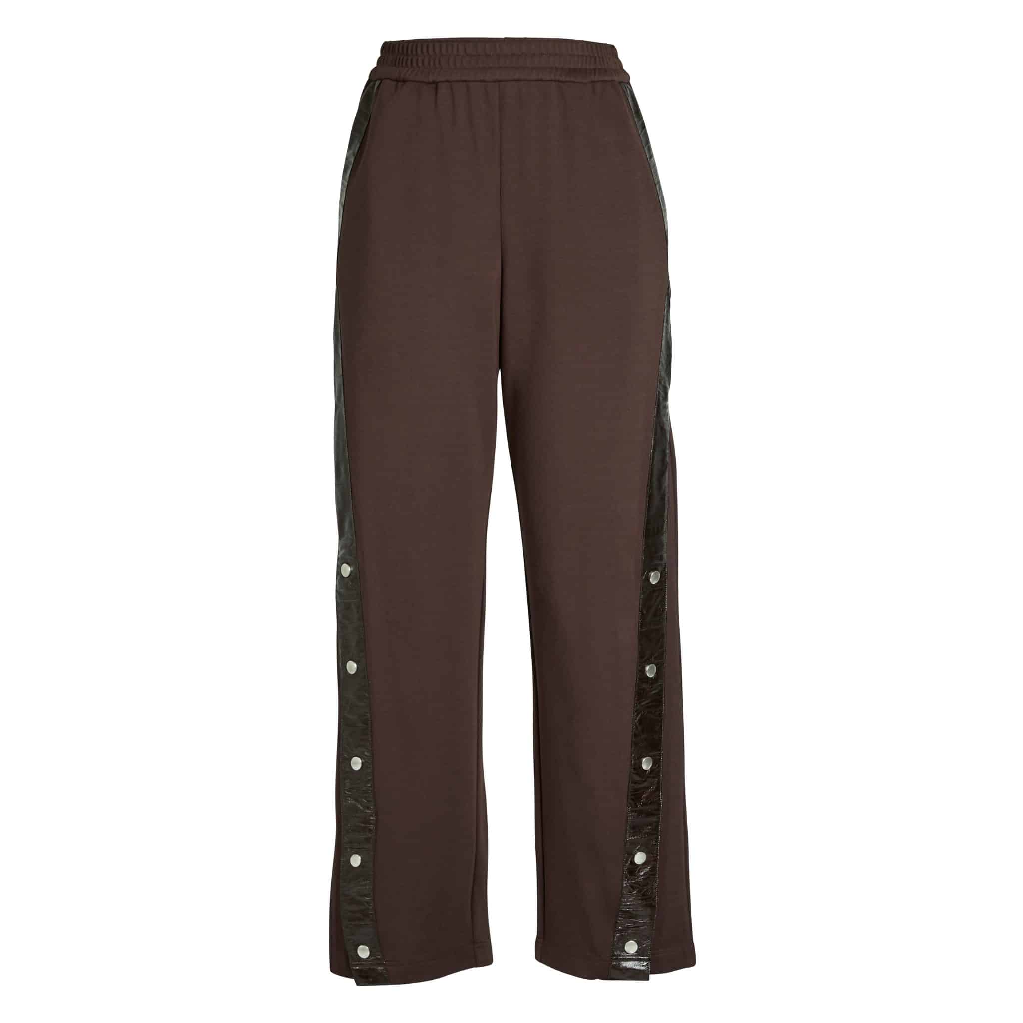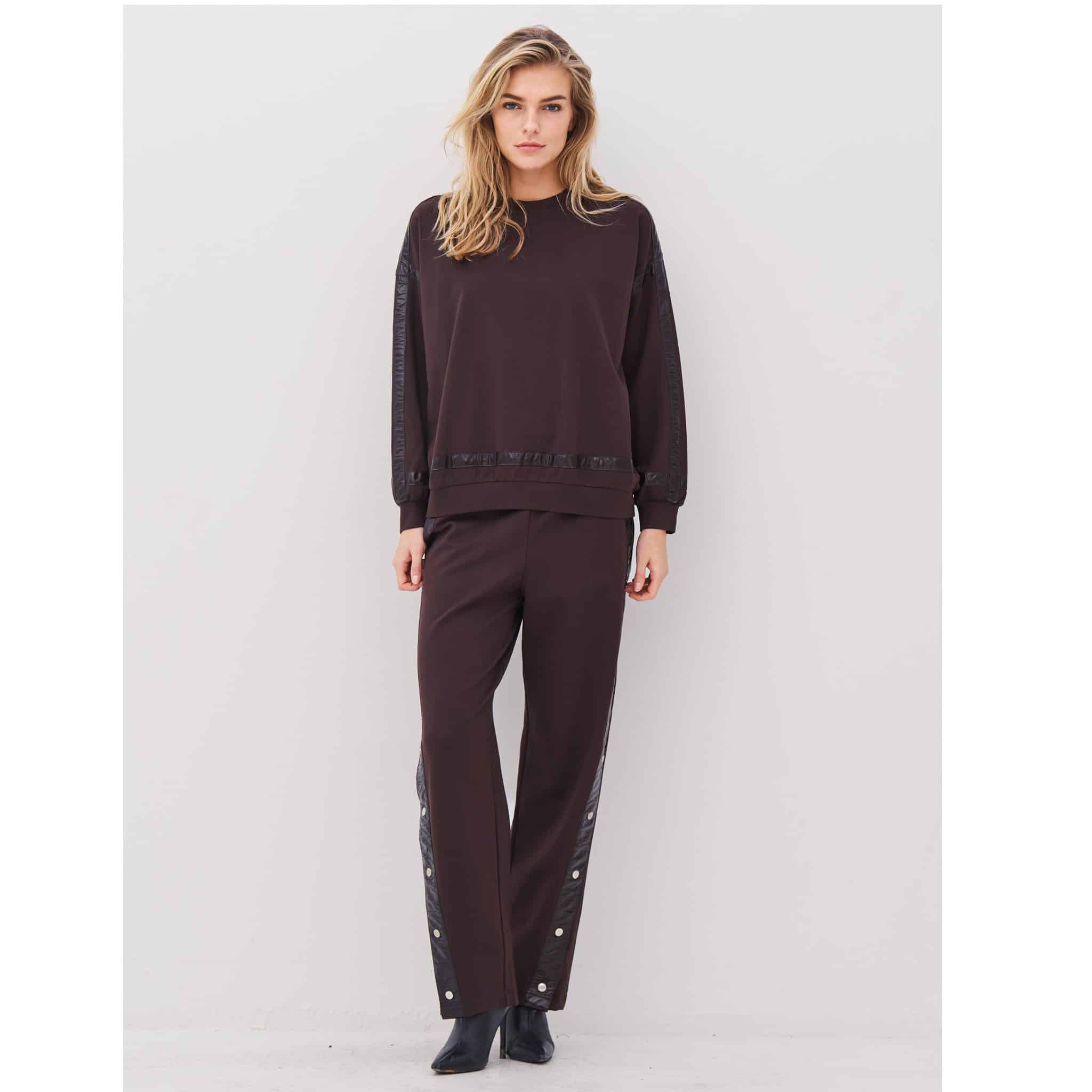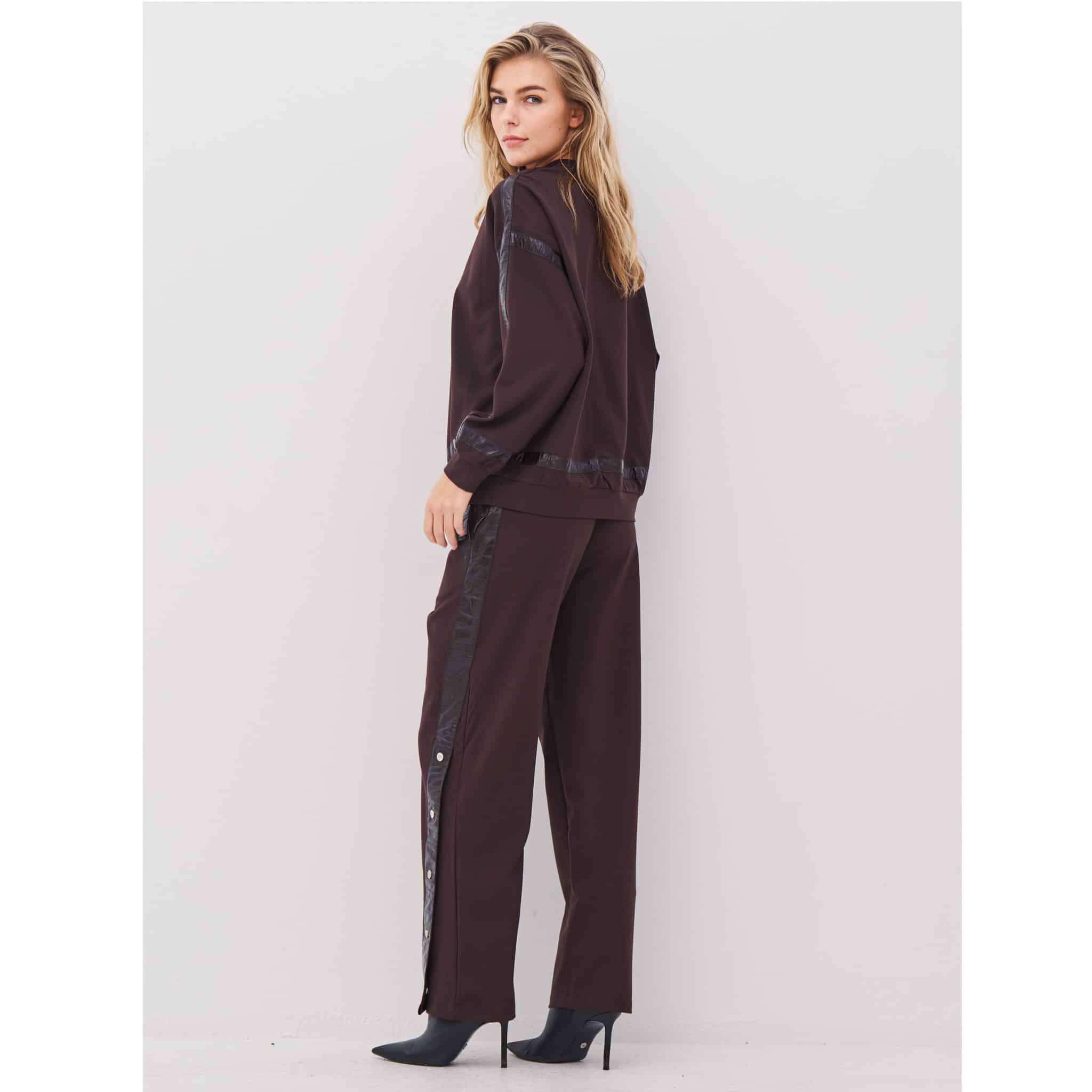 Langs siderne løber en kontrastkant i læderlook med trykknapper, der tilfører kant og giver mulighed for at justere stylingen, alt efter om du ønsker et mere åbent eller strømlinet look.