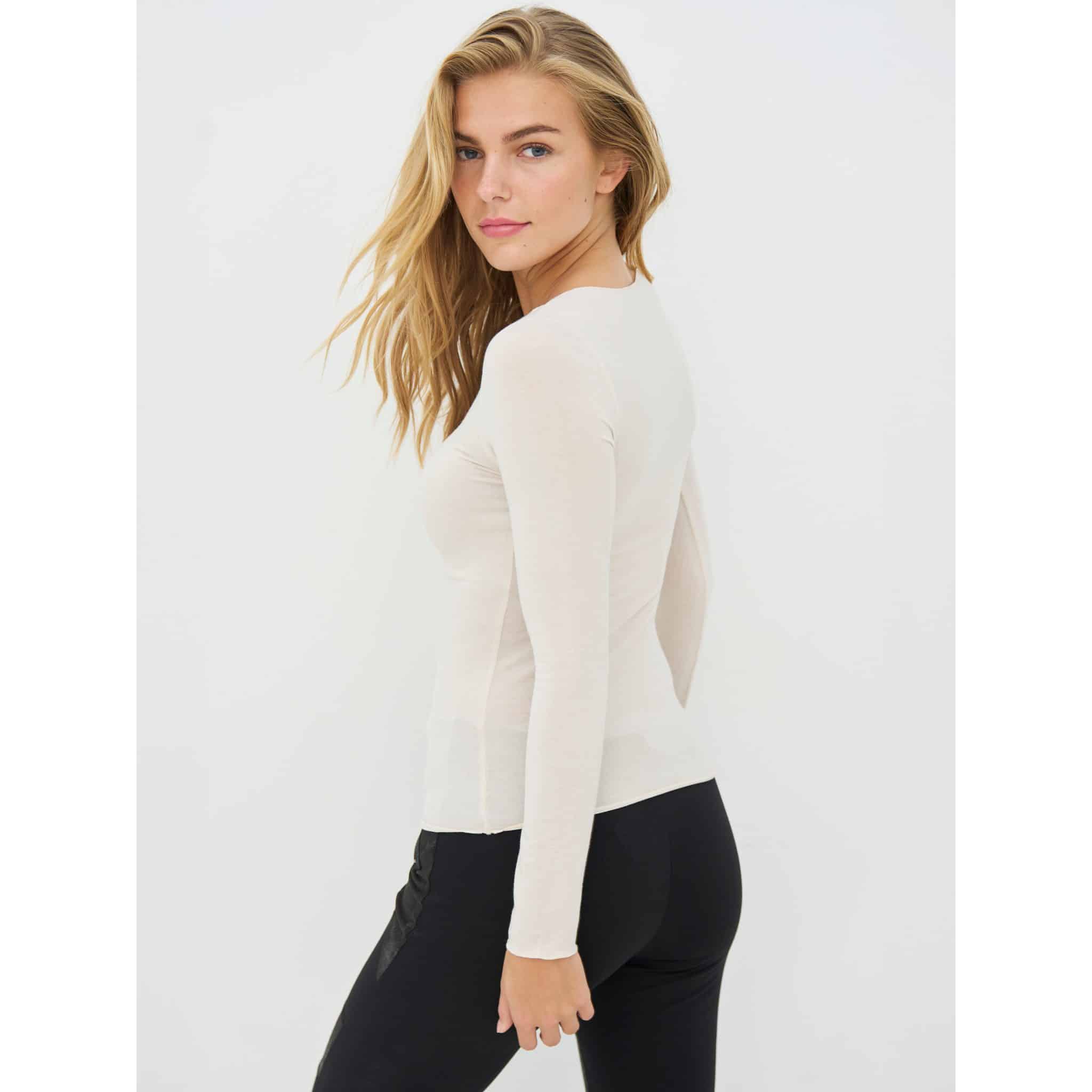 Blusen er nem at bruge igen og igen – både alene eller som et lag under skjorter, strik eller jakker. Style den med bukser, nederdel eller under en åben cardigan for et enkelt og anvendeligt hverdagslook.