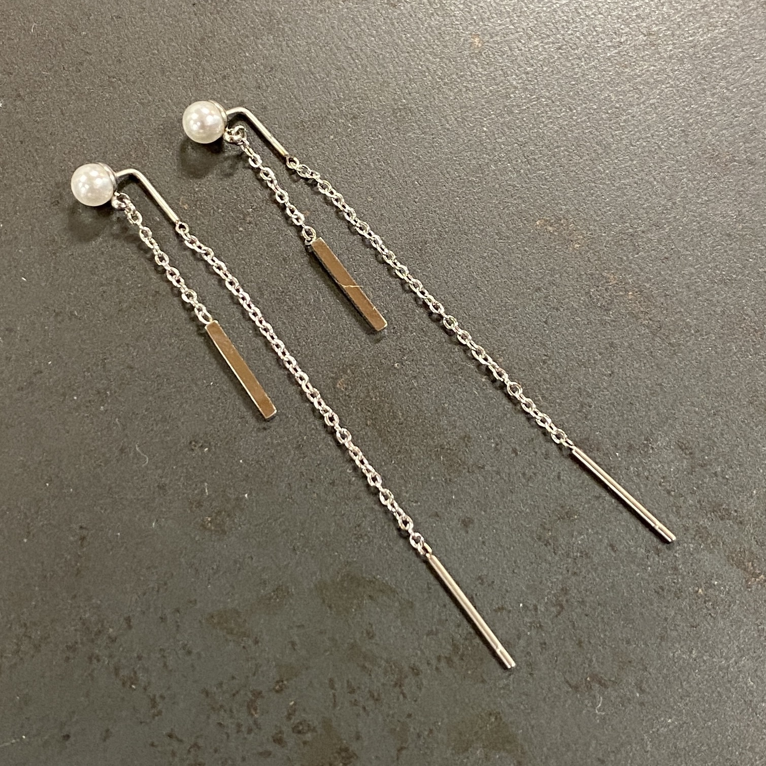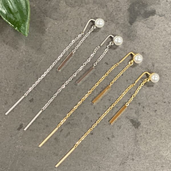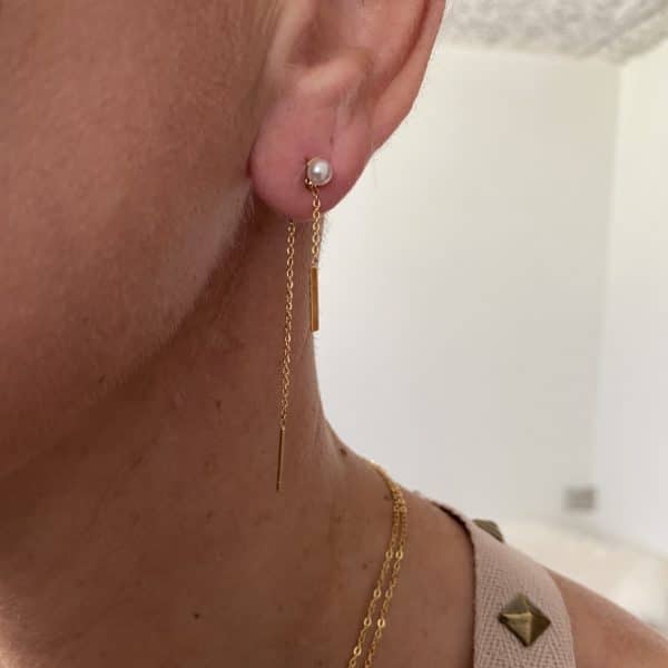 Dobbelt ørering med fast stykke, som sidder i øret, pyntet med en perle