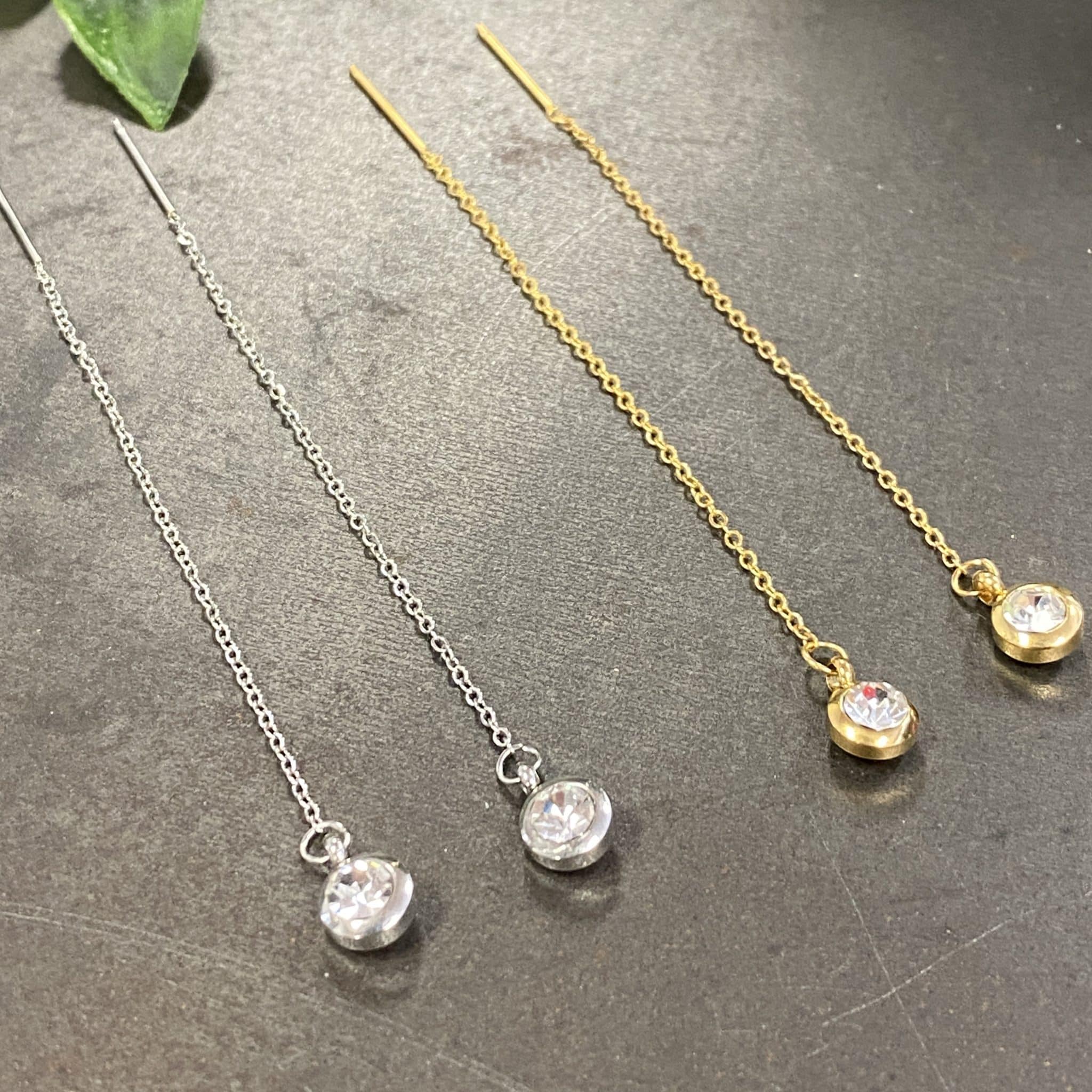 Kædeørering med vedhæng som omkranser en slebet rhinesten.