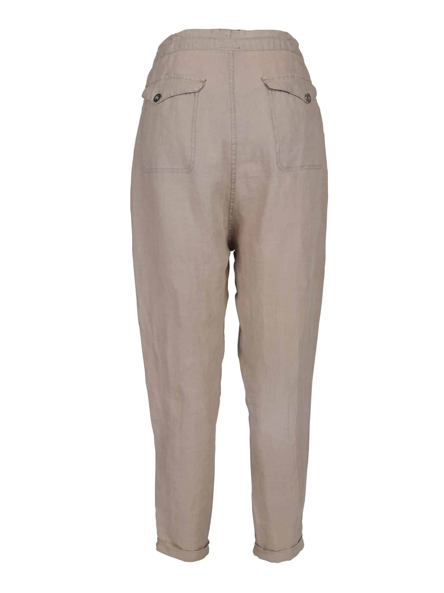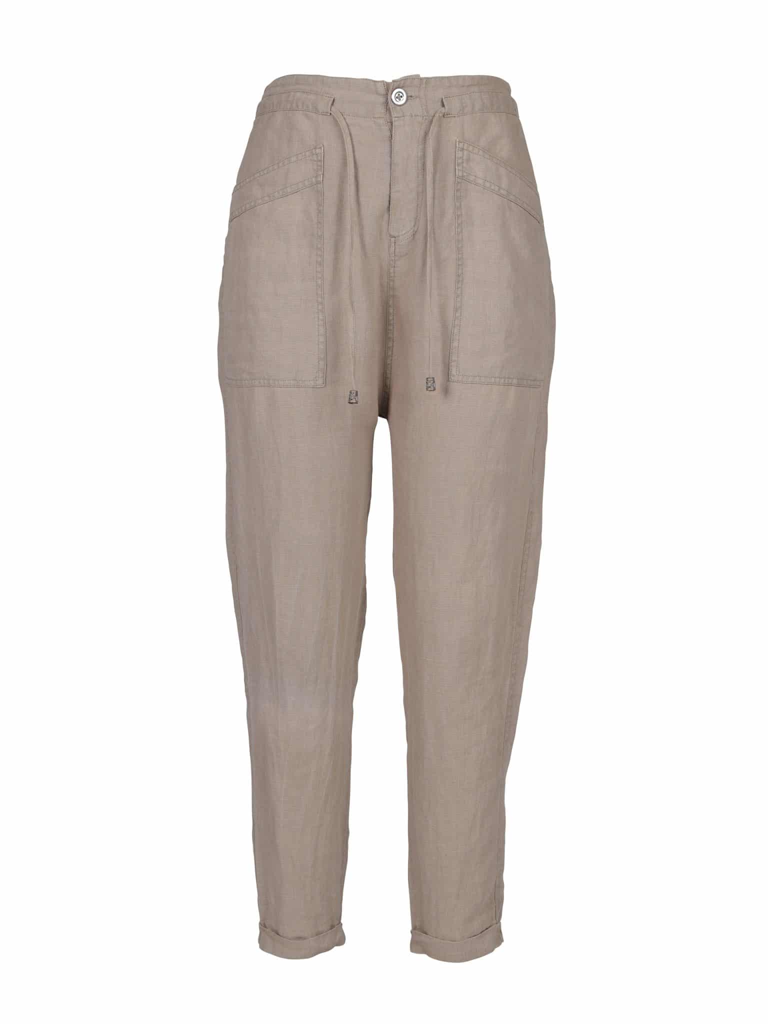 Disse bukser i en let og behagelig hørkvalitet udstråler en elegant, naturlig charme, der gør dem til en uundværlig del i enhver garderobe. Style dem med den matchende hørbluse fra samme serie og afslut med minimalistiske sandaler for et ubesværet, chic look.