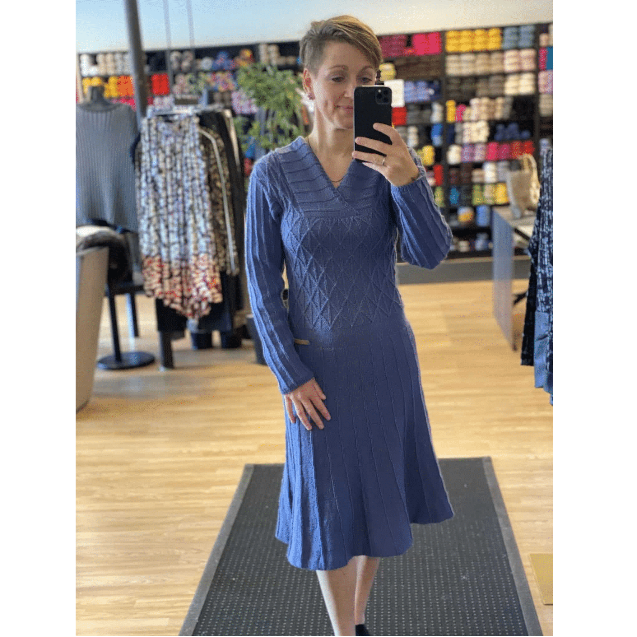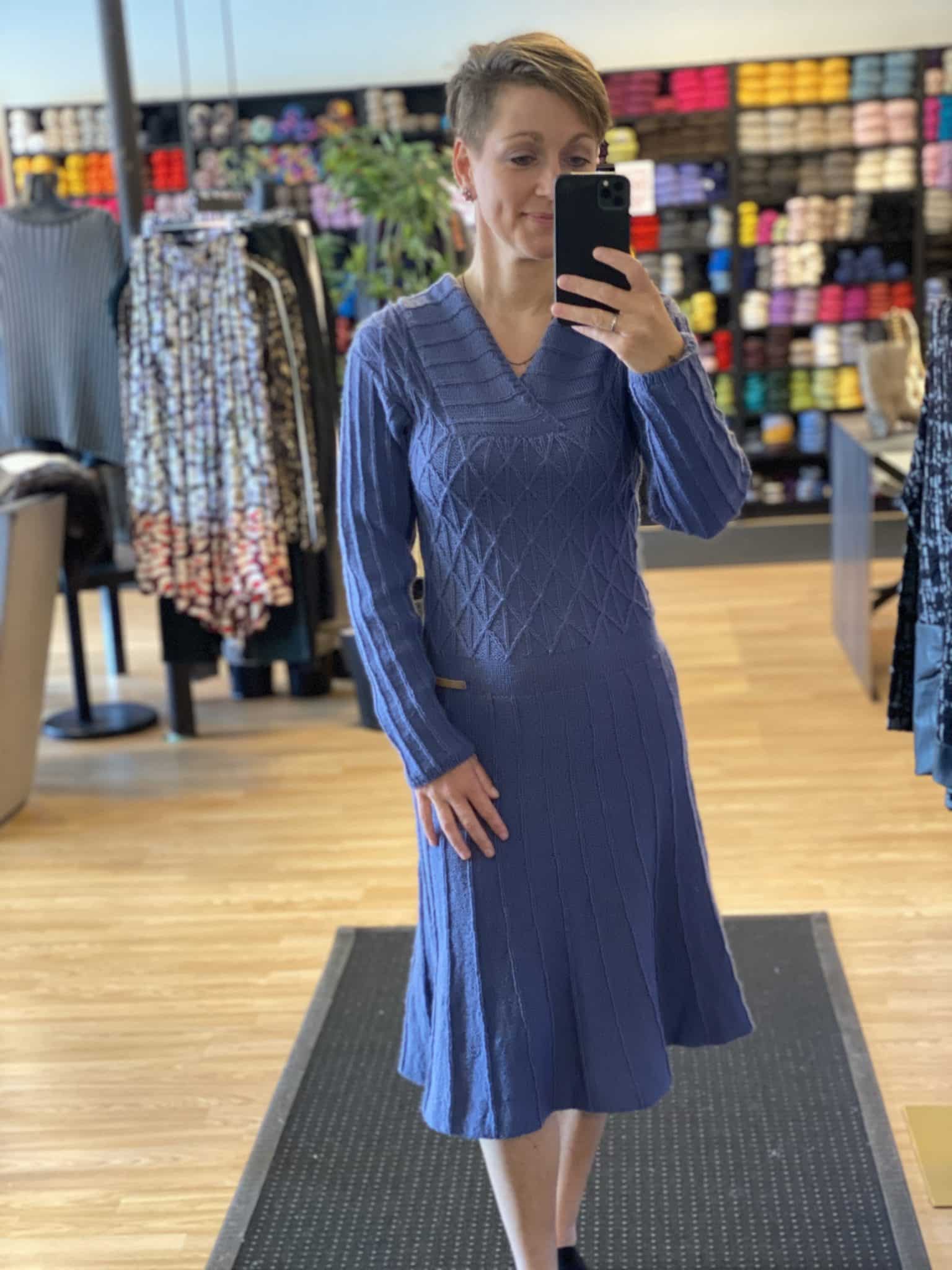 Kjolens mønster er skrevet pind for pind, så selvom det kan se lidt vanskeligt ud, så er det ikke svært at strikke. Ønsker du at kjolen skal strikkes længere, så kan du sagtens det, det er nemt at tilpasse, fordi du strikker nederdelen til sidst.