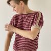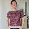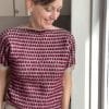Denne Tshirt er strikket nedefra og op i forstykke og ryg, og syet sammen i siderne og oppe ved skulderen.