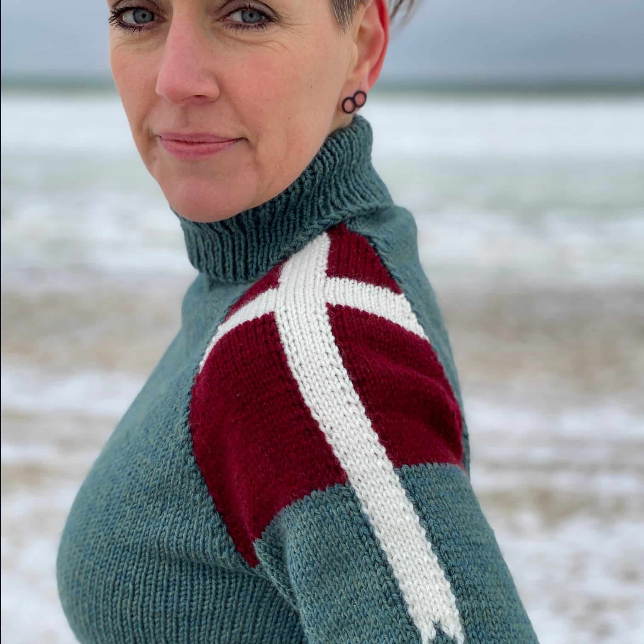 Denne model hedder Fædreland og har et fedt og cool udtryk. Den er en enkelt rullekrave med raglan ærmer, og har en virkelig god pasform. Det ene ærme har et dansk flag på skulderen, og det andet ærme har det grønlandske flag, som gør at den er let genkendelig, og anvendelig. Er du soldat, rejsende, sejler eller bare glad for dit land, så kan denne model sige meget uden ord. En stolt følelse af Fædreland.