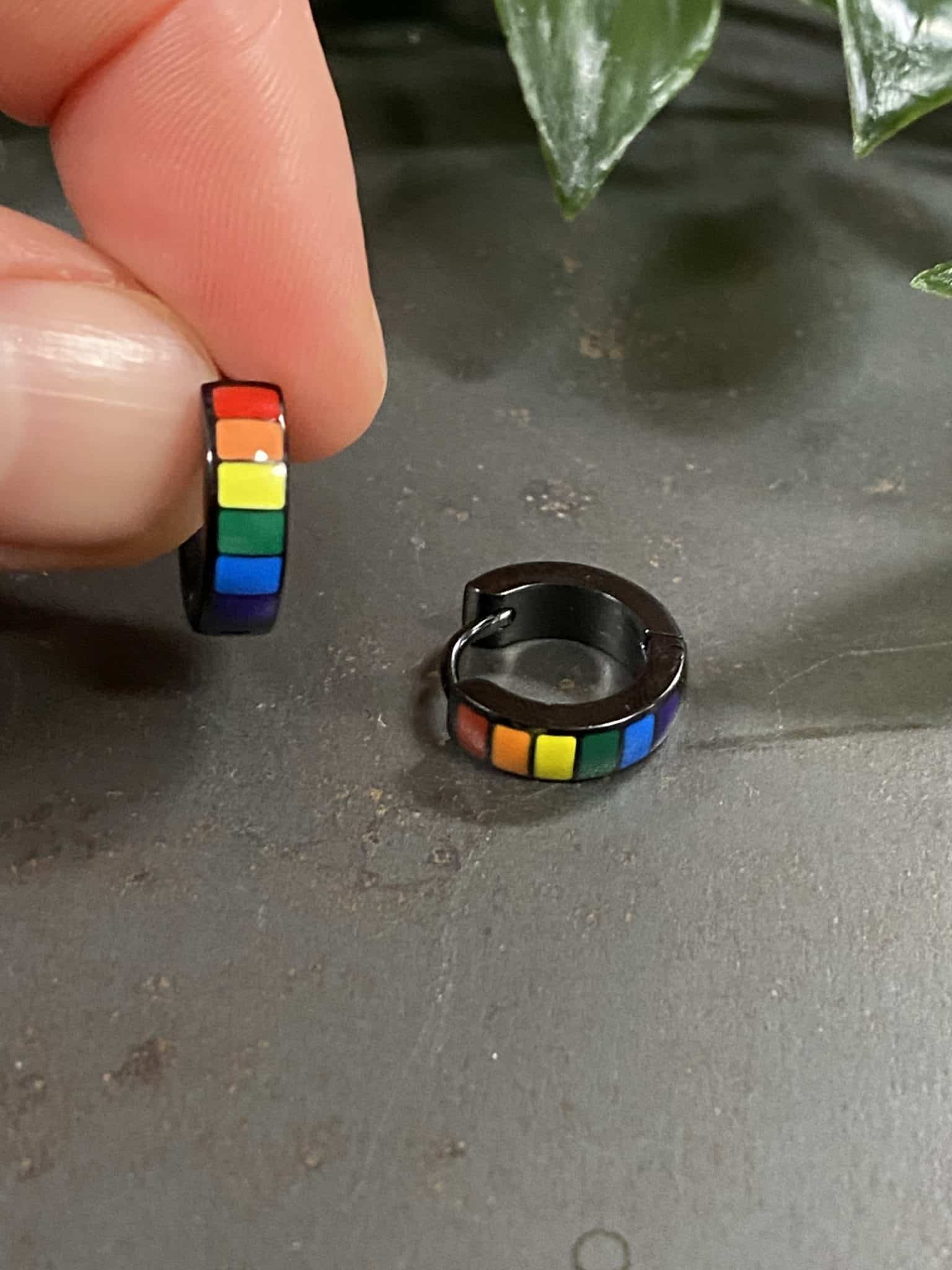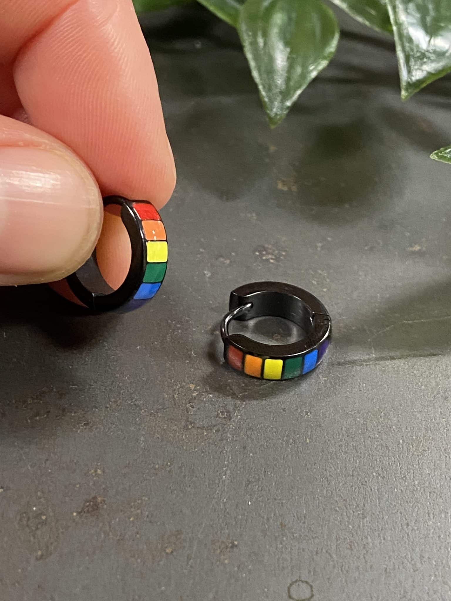 Sorte hoops med regnbuemønster